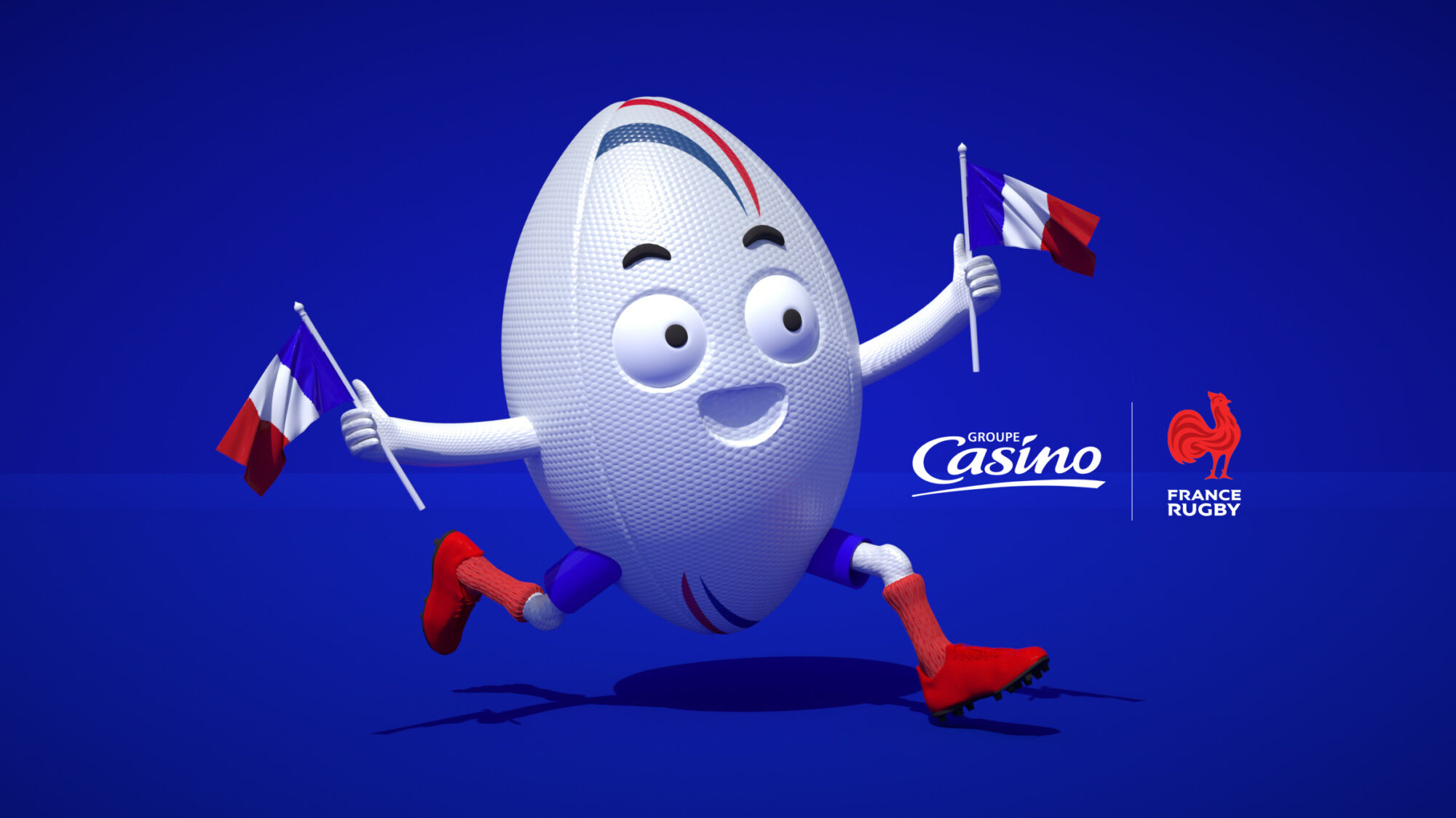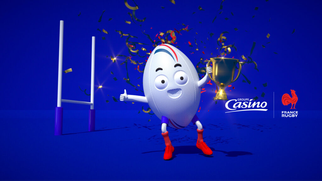 Les enseignes Casino deviennent partenaire officiel de la Fédération Française de Rugby et de ses Équipes de France à XV et à 7. Afin de les accompagner au mieux et de difuser ce message auprès du grand public et des familles, je souhaitais créer une mascotte afin de dynamiser leurs points de vente. Résultat : un personnage fun, dans l’univers du rugby, déclinable à souhait pour porter le discours de promotion.